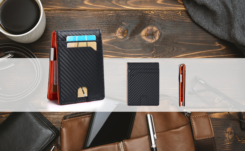 ¿Por qué elegirla? Bloqueo RFID certificado, diseño minimalista y bolsillo frontal de acceso rápido. Perfecta para profesionales modernos que valoran seguridad y estilo. Disponible en negro y naranja.