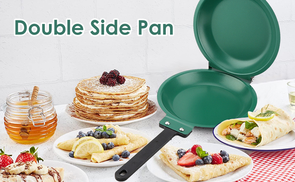 Cocina sin esfuerzo con la Sartén Doble Cara Antiadherente. Diseño plegable que voltea automáticamente, revestimiento antiadherente premium y compatible con estufa de gas e inducción. Ideal para tortillas, panqueques, tostadas y más.